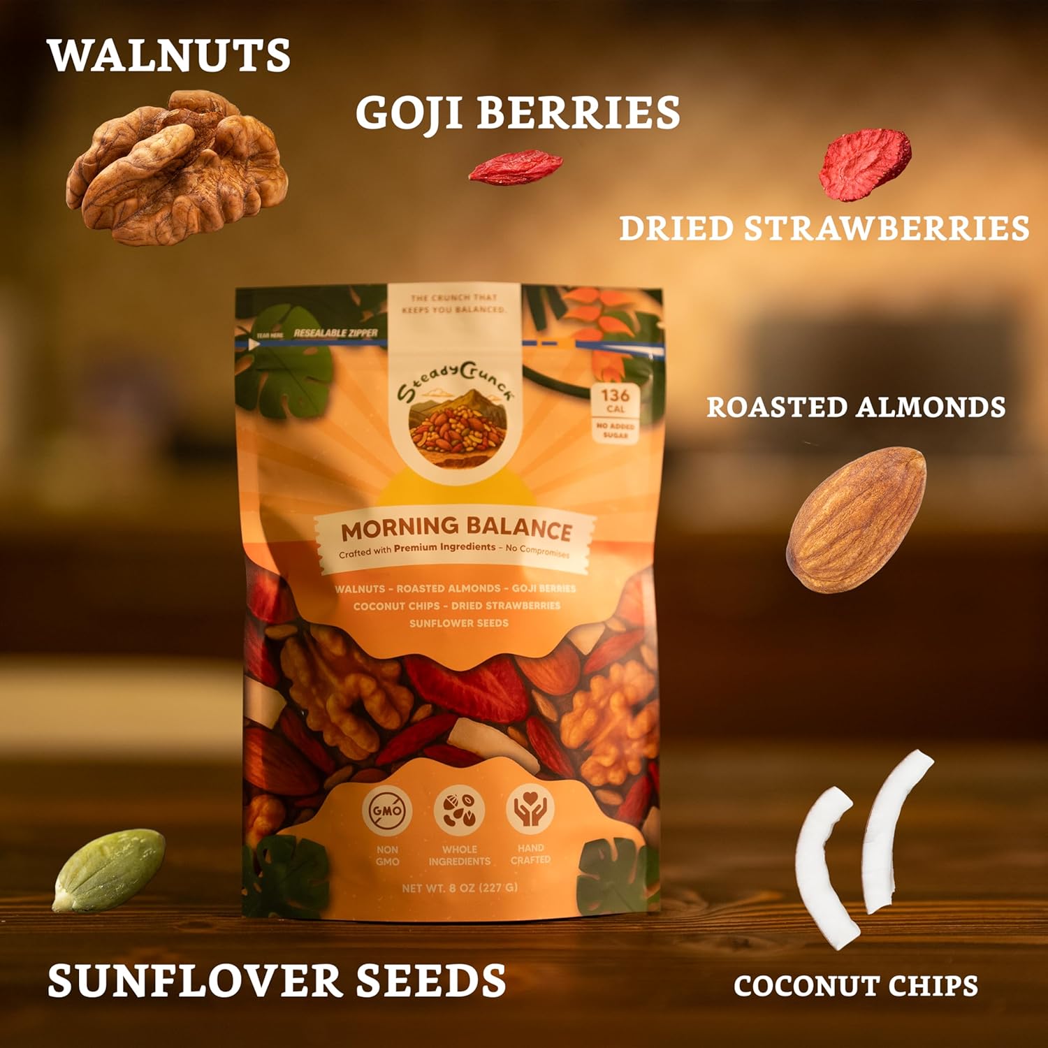 • Steady Energy from Real Ingredients: Balanced with protein, fiber, and healthy fats to keep you energized longer, best for workouts, busy mornings, or afternoon boosts, this gluten free nuts mix provides lasting fuel without compromise